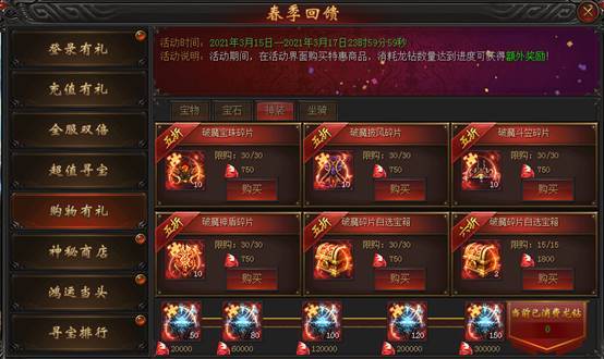 活动说明:活动期间,在活动界面购买特惠商品,消耗龙钻数量达到进度可获得额外奖励!